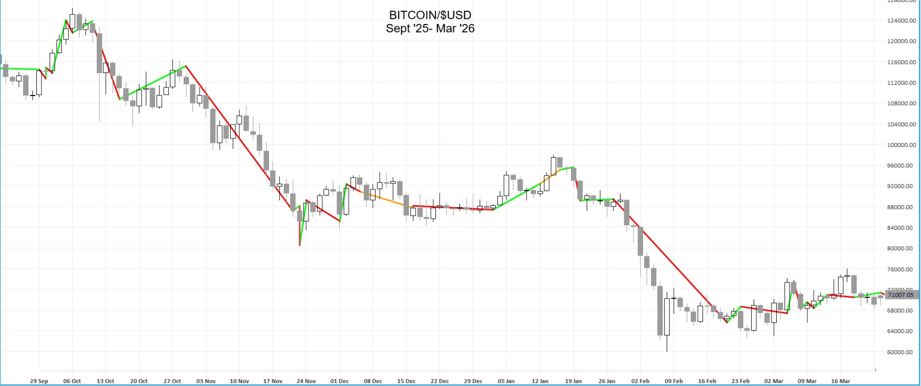 By combining the Cycle of Progression, the Periodic Cycle, and the Arcana Trend Cycle, we’ve mapped the underlying market energy driving Bitcoin with precision. Below, you’ll find several days of the intraday Cycle of Progression—what Gann referred to as the “4-Minute Cycle.”